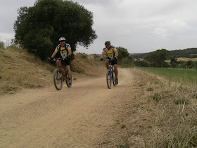 De Pueyo sortim i agafem una trialera molt bonica. Técnica, però amb ganes d'arribar. Falta poc però les forçes començaven a flaquejar una mica. Finalment desprès d'un troç d'asfalt arribem a Vilas del Turbón. Contents ens fem unes fotos just devant dels lletreros indicadors del poble, però encara faltava 1 km per arribar al nostre hotel. Semblava que no acabava mai.
